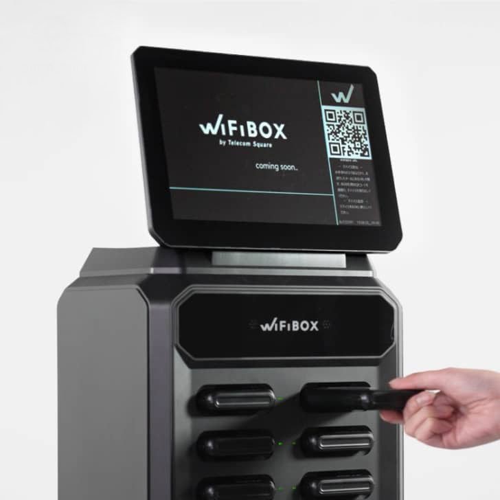 メールで送られてきた受け取りURLを開いて、機械にあるQRコードを読み取るとスマホ上に「受け取る」ボタンが表示されるのでそれを押すと、自分のポケットWiFiがガシャンと飛び出てきました。