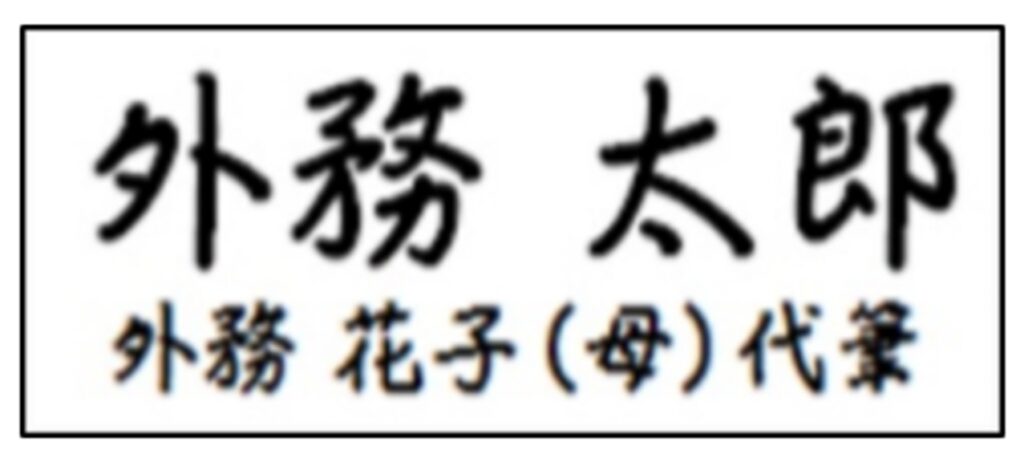その場合は下記の例のように「子供の名前 親の名前(続柄)代筆」と代筆します。