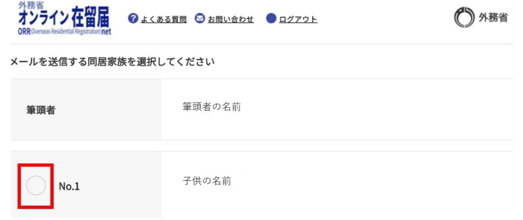 - 子供本人のオンライン在留届を提出