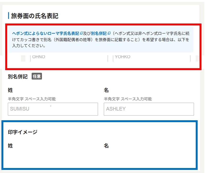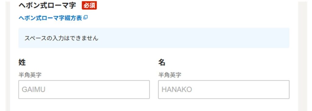 勿論、そもそもヘボン式でパスポート作成する場合は赤枠部分の入力は不要です。