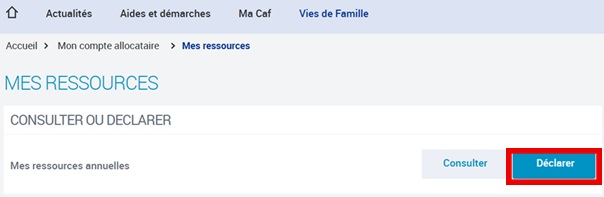 先ほどの「Mes ressources」の場面から今度は「Déclarer」をクリックします。