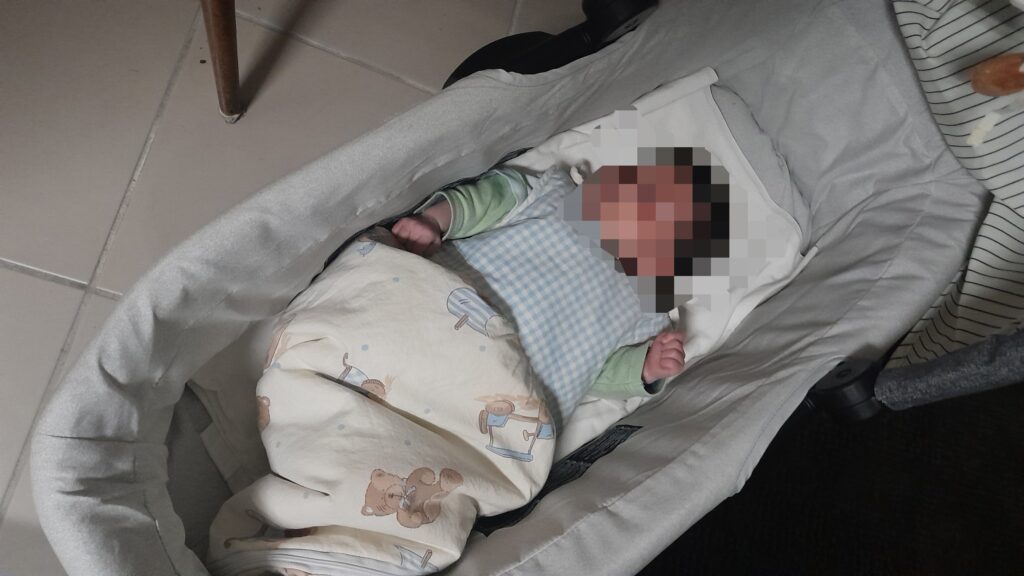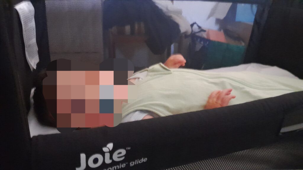 ワンオペ時の私のシャワー中、キャリーコットで待機してもらってました。