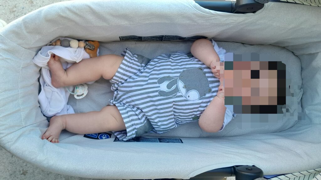 息子は寝返りができるようになり周りが気になりだした生後5ヶ月ごろから、リクライニング可能な普通のベビーカーを使うようになったので生後8か月の今はキャリーコットは使用していません。
