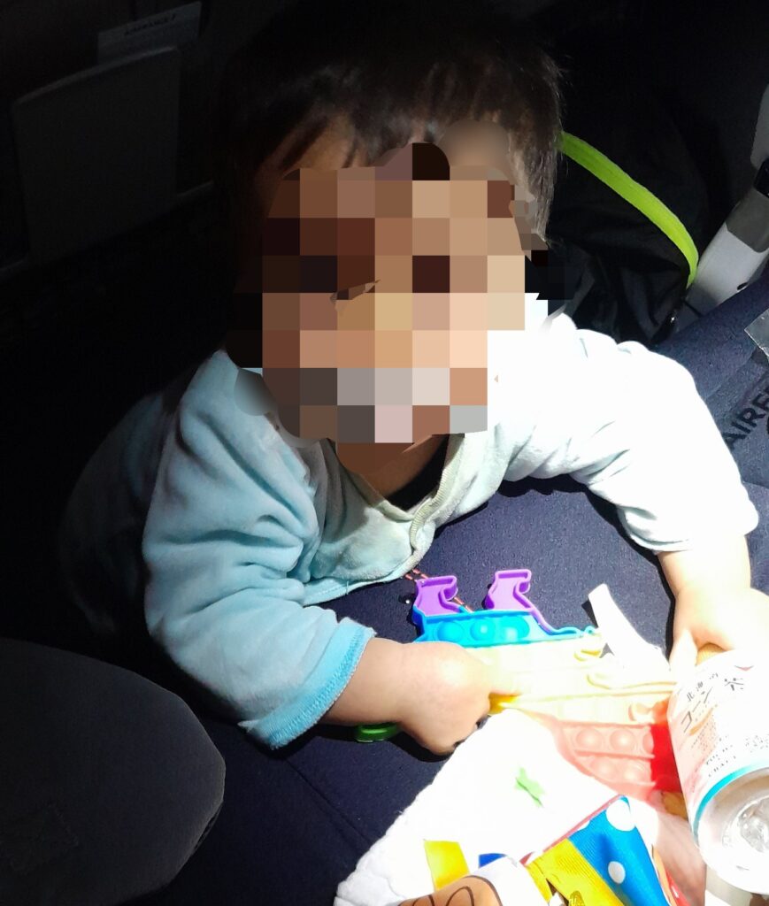 夜間便の方が機内で寝られて息子にとって良いだろうと思っていましたが、息子は私の予想よりも環境が整っていないと寝られないタイプでした。