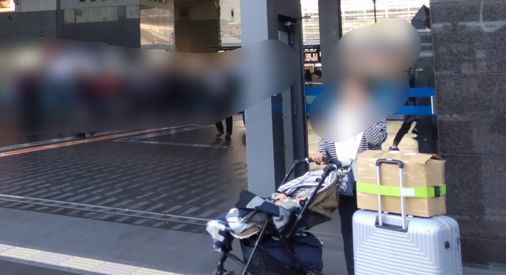 もし一人だったら、息子を抱っこ紐にいれた状態で重たいスーツケースを持ち上げるのに苦労したでしょう。