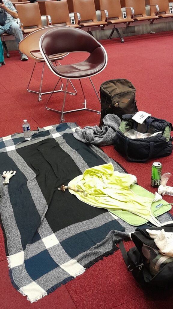 空港でもいつもよりは寝にくいですが機内よりマシだし、ぐずった場合に逃げ場があるのは親の心理としてはありがたい。